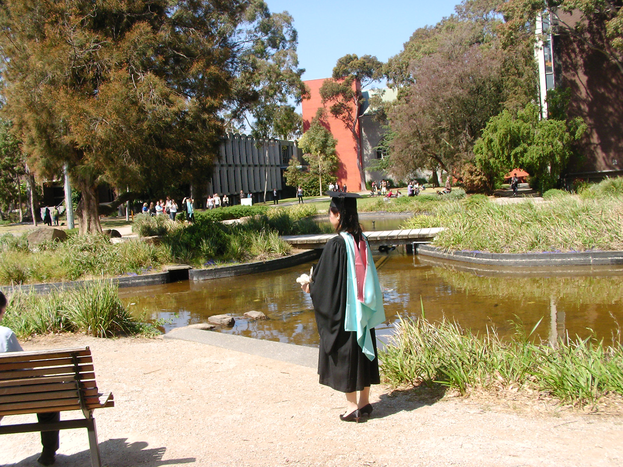 そういえば、姪のメルボルンでの卒業式でも正装している人もいれば、ジーンズもいた。まあ、上から卒業式用ガウンをかぶるのでガウンの下はどうでもいい格好でいいと思うのだろう。でもガウンを脱いだ後祝宴もあるのだからもうちょっとちゃんとした格好でのぞんだ方がいいと思った。世界的にドレスコードを守らない風潮なのかも。写真はメルボルン、モナッシュ大学庭園で卒業式にのぞむ前の姪。