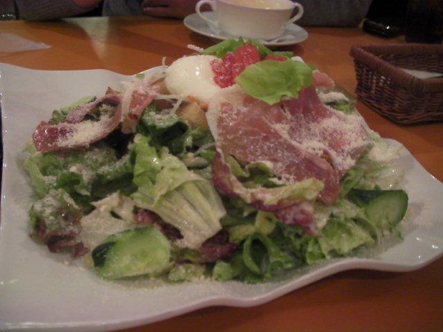 シーザーサラダに夫は錦目鯛の野菜煮込みを注文。