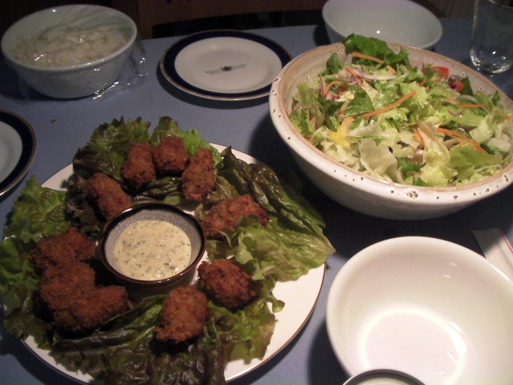 サラダと牡蠣フライ