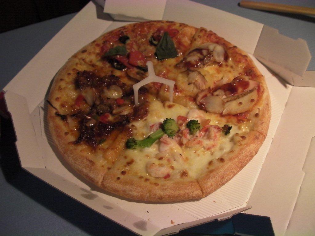 仕事を終えたN江さんの長男さんが6時過ぎから来て、これだけご馳走があるのに彼の好きなピザを注文。