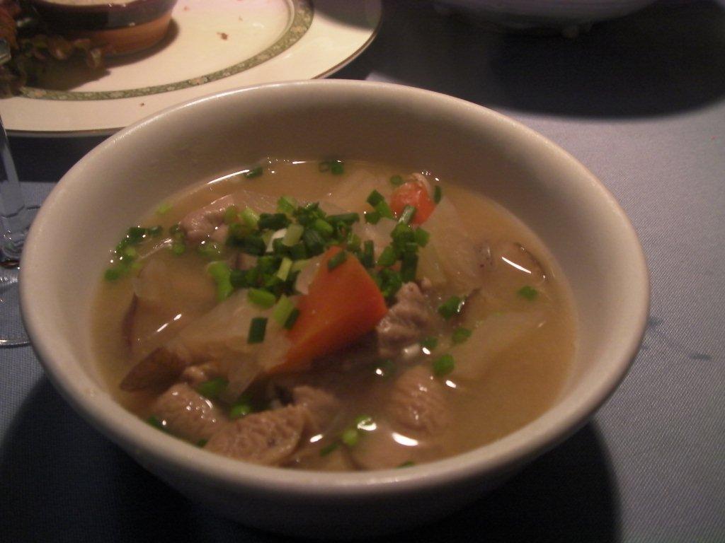 彼女手作りのモツ煮込みはご主人もうちの夫も大好物。野菜がたくさん入っていて熱々でとってもおいしい。