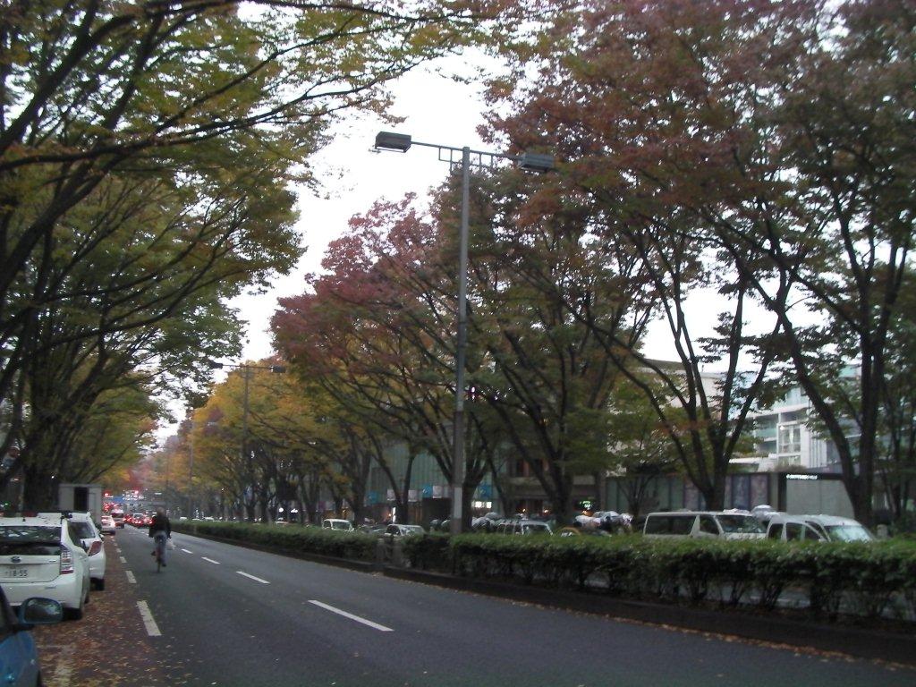 雨の表参道は落葉が散ってすっかり秋模様