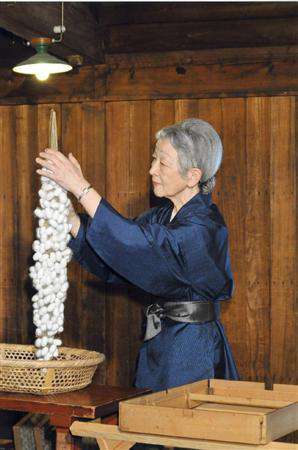 皇后さまは、「蔟(まぶし)」と呼ばれるわらの網にできた日本純産種の蚕「小石丸」の繭を丁寧に取り出して、「病気がなかったのが何よりでした」と話された。