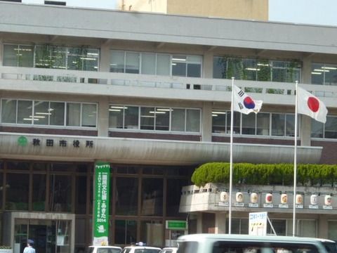 【悲報】秋田市役所、ついに韓国旗を掲げる(画像あり)