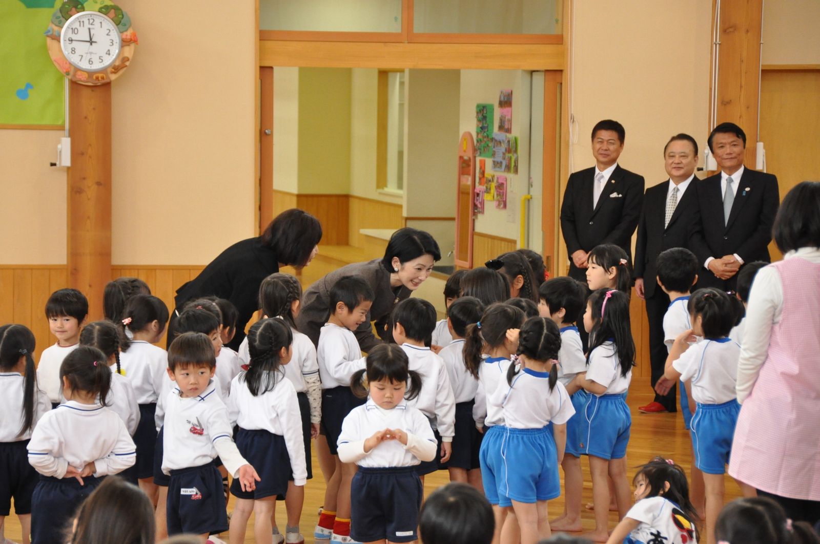 先に到着していた安倍総理が出迎え、本宮市にあるスマイルキッズパークを訪問、子どもたちとの触れ合いがとても自然。