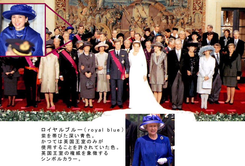 1999年12月4日、フィリップ王太子結婚式に参列。用意してきた赤い衣装がレッドカーペットと色かぶりするため、土壇場で変更したロイヤルブルー衣装が周囲欧州王族貴族たちから浮きまくり。