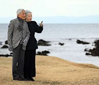 31日昼前、腕を組んで、神奈川県の葉山御用邸近くの浜辺に姿を見せられた両陛下。