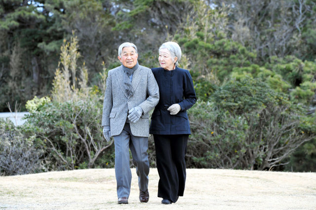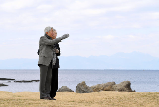 天皇皇后両陛下、静養先の葉山で浜辺を散策される