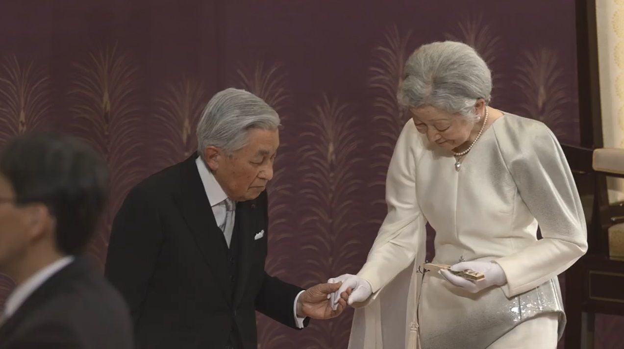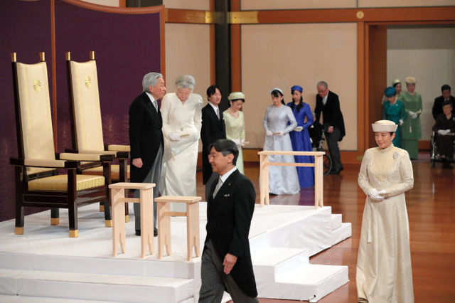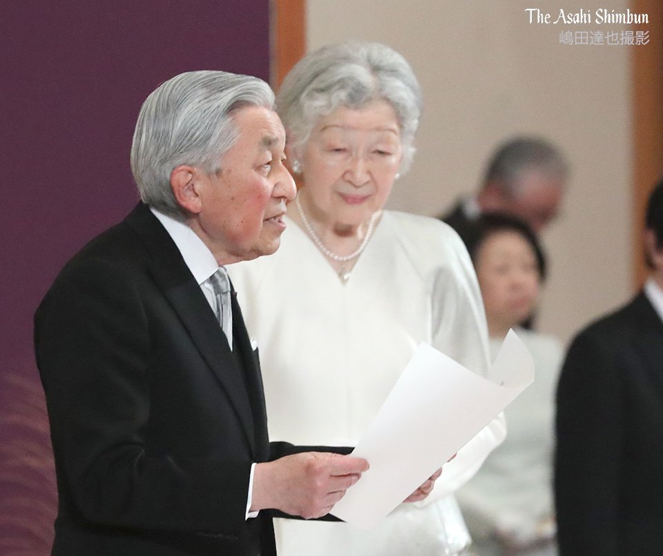 同日午後5時から天皇陛下は、皇居・宮殿「松の間」で「退位礼正殿の儀」(たいいれいせいでんのぎ)に臨まれ、退位するにあたってのお言葉を述べた。
