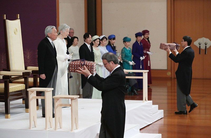 宮内庁は退位の儀式について、陛下のお気持ちを踏まえて「粛々と静かに」行う方針で、30日の儀式にも皇族方のほかは宮内庁や皇宮警察の職員のみが参列し、首相など三権の長らは出席しなかった。