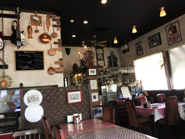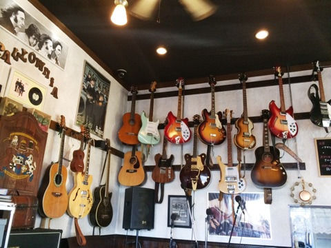 店内はビートルズの音楽やギターで埋め尽くされている。