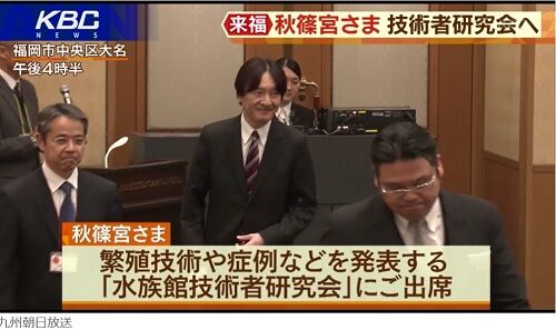 秋篠宮さまは日本動物園水族館協会の総裁を務めており、30日に同市で開かれた水族館技術者研究会に出席するため、同日から福岡市に滞在していた。