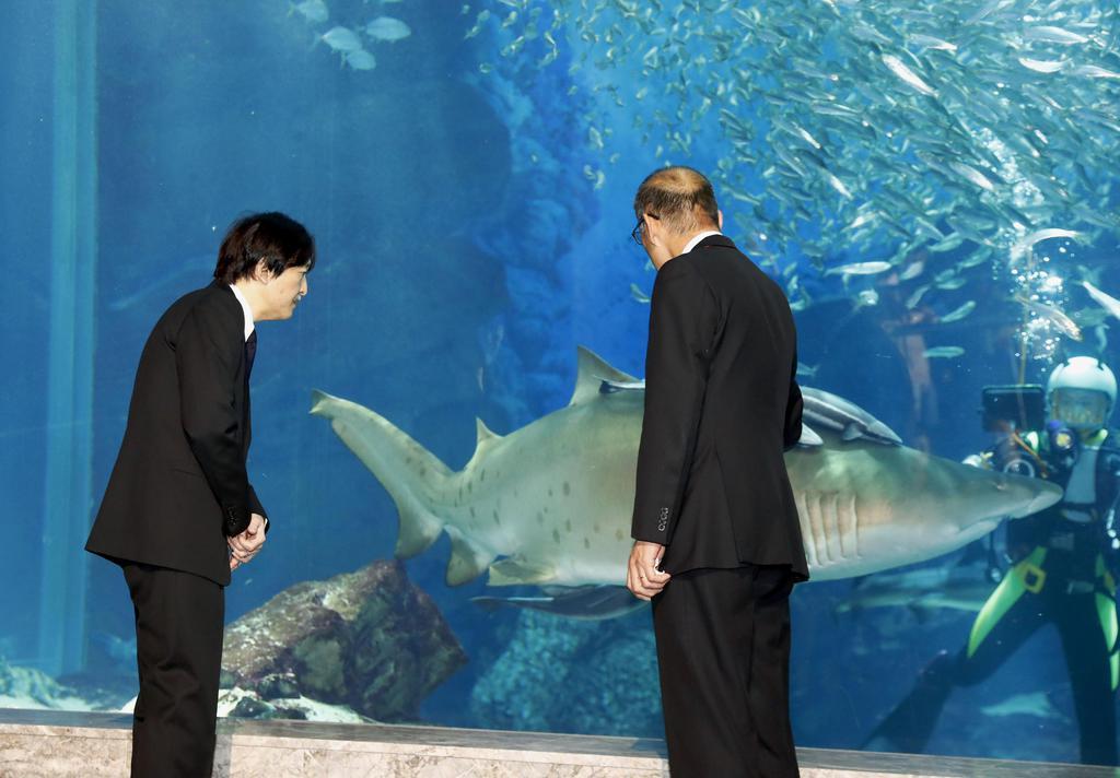 秋篠宮さま 15年ぶりにマリンワールド視察 シロワニに驚き