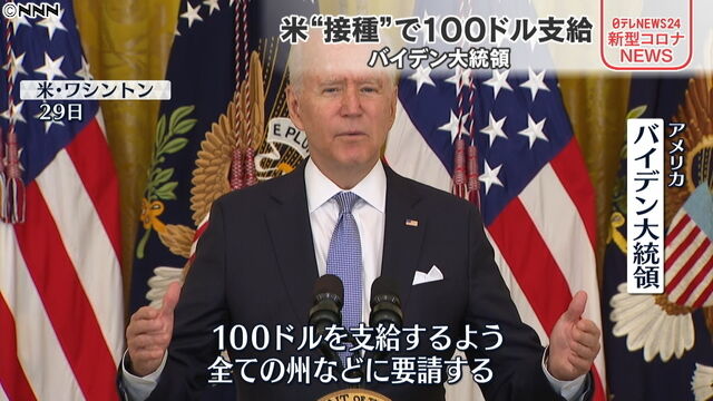 そういう中、バイデン大統領はワクチン接種する人に100ドル配布を決めた。