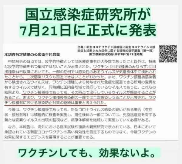国立感染研究所も正式発表!ワクチン打っても効果なし!
