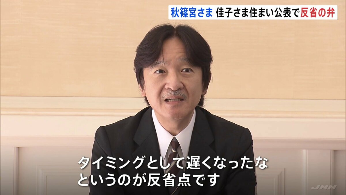 秋篠宮さま:「(佳子さま“一人暮らし”の発表は)本来であれば、年度末に出せば良かったと思いますけれども、色んな意味で時間がかかったということがありました。私自身がそのことについてかなりぐずぐずしてた。つまり引き延ばしてしまった。非常にタイミングとして遅くなったなというのが反省点です」