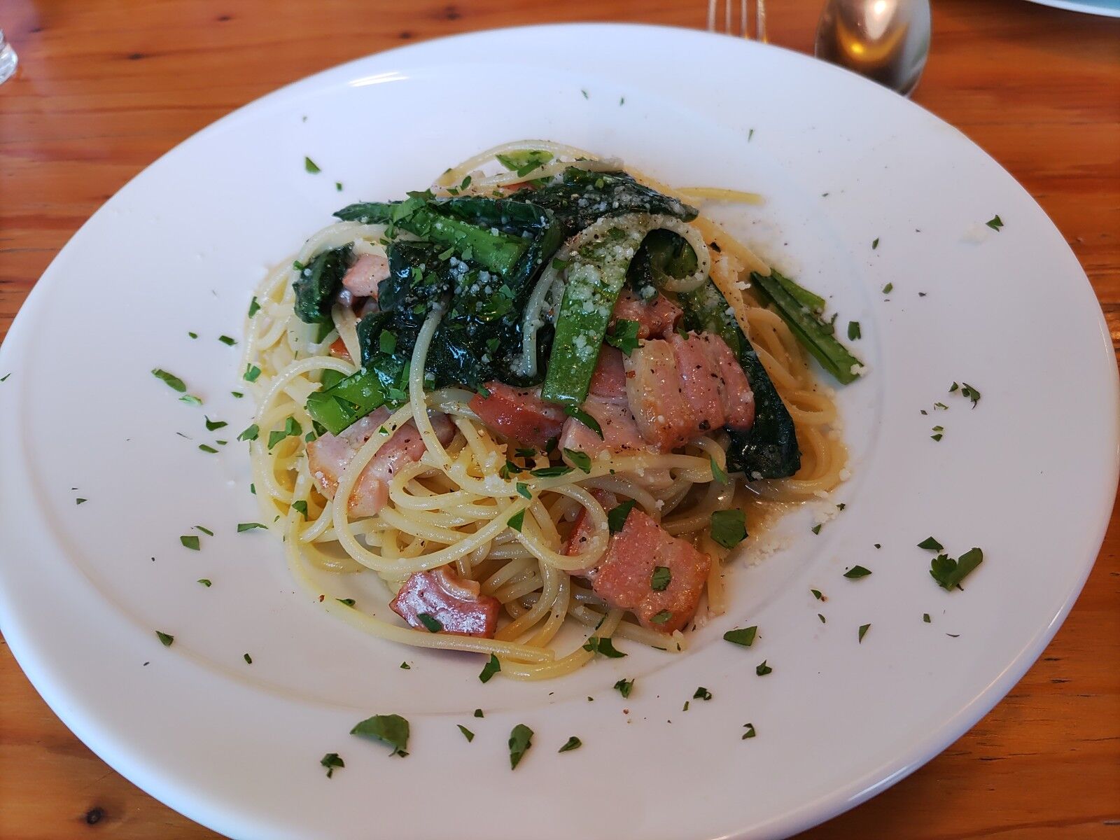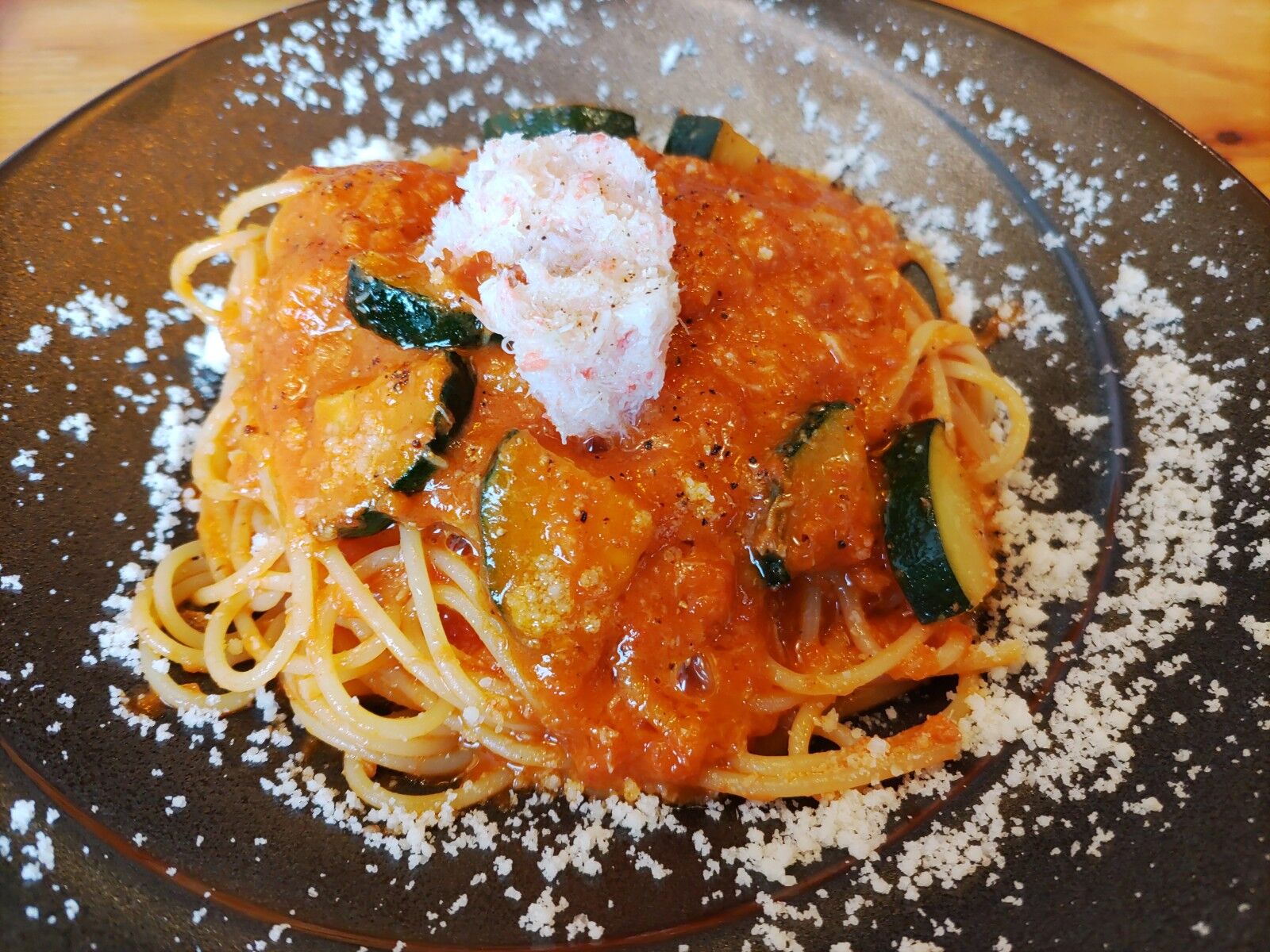 サラダも何もつかない、スパゲティだけの一品で1600円もしたからすぐに出てくればよかったのだが、外にメニュー表示もないし、座ってしまってから失敗したことに気付いた。