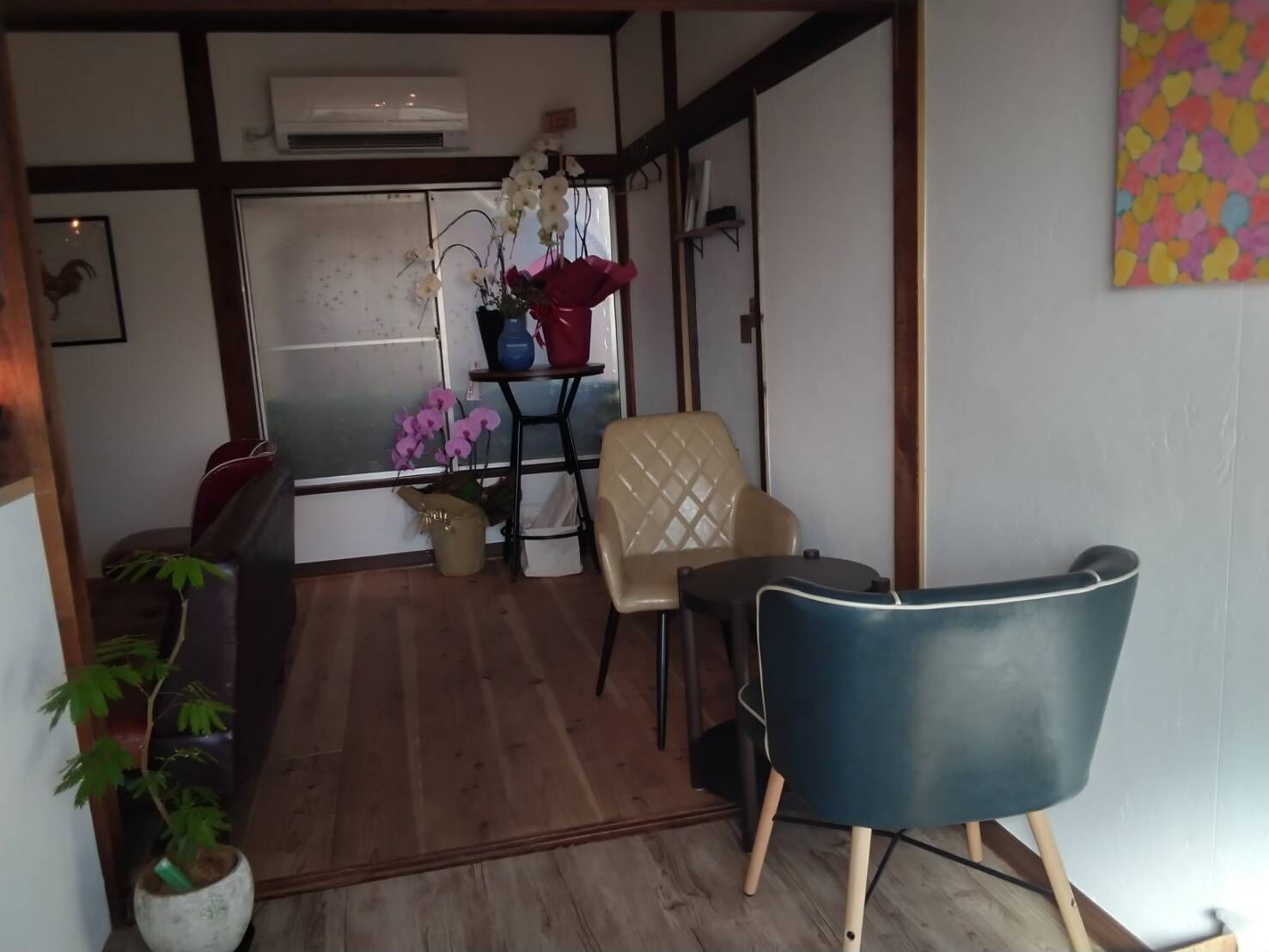 普通の民家の二階で外階段を上がっていく、ちょっと見つかりにくいかも。
