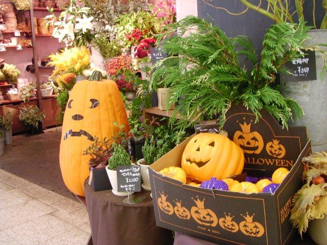 もうすぐハロウィーン。写真は地元駅に入っている花屋さんに飾ってるかぼちゃ。