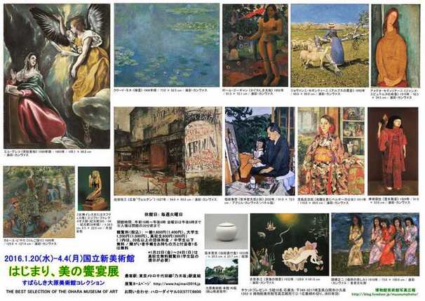 きょう両陛下が六本木の国立新美術館で「はじまり、美の饗宴展 すばらしき大原美術館コレクション」 を鑑賞されたとのこと。