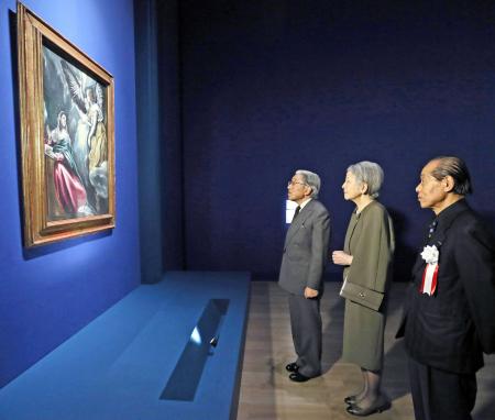 両陛下は、エル・グレコの「受胎告知」やパブロ・ピカソの「頭蓋骨のある静物」など、大原美術館が誇る名作をじっくりと見学。天皇陛下は「これは何をしている場面なの」「戦時中に描かれたのですか」などと説明役の担当者に熱心に質問していた。