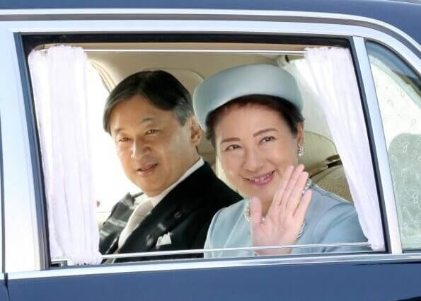 皇居へお祝いの挨拶に出向く下天皇夫妻と秋篠宮ご一家、帽子を被り、正装姿を拝見すると上天皇の権威は健在です。