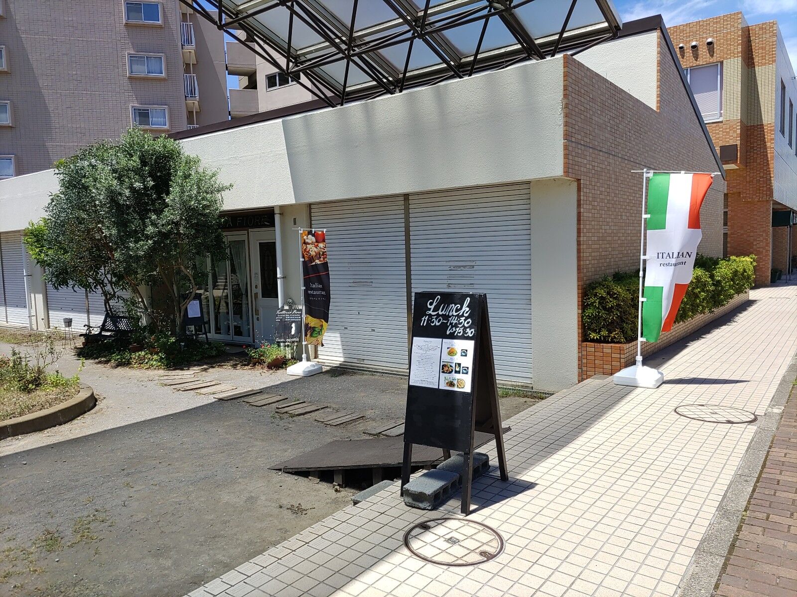 イタリアの国旗が目印です。