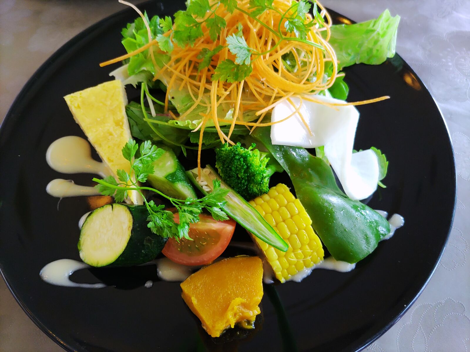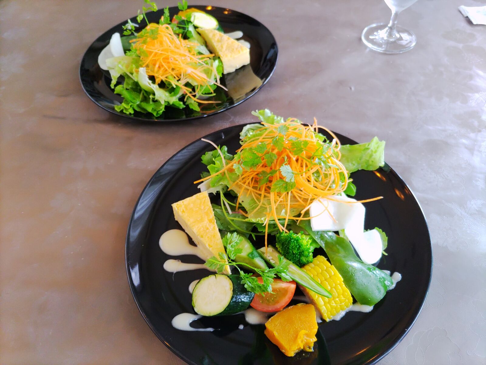 まずはいつもの新鮮な野菜具だくさんのサラダ