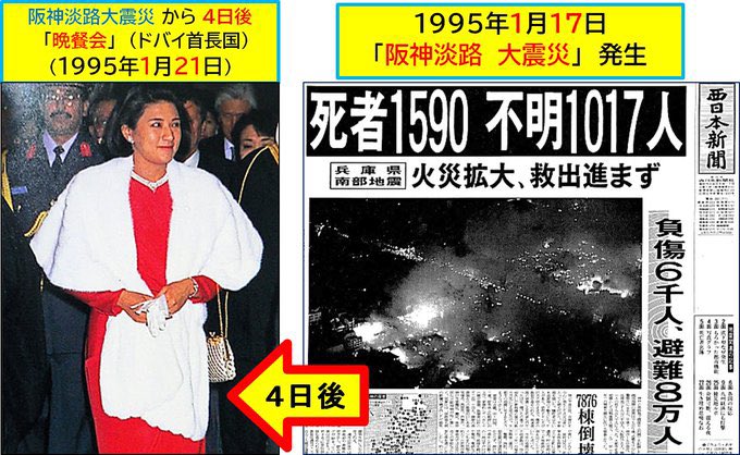 1995年1月17日阪神淡路大震災が襲った3日後に皇太子夫妻は中東3ヶ国訪問に旅立った。