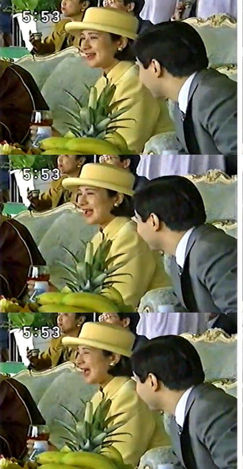 1995/01/24 ラクダレース見物中、貴賓席で雅子に話しかけ、雅子の顔色をずっとうかがっている徳仁とあまり熱心に相手をする様子のない、一貫して無視し、下品に笑っている雅子