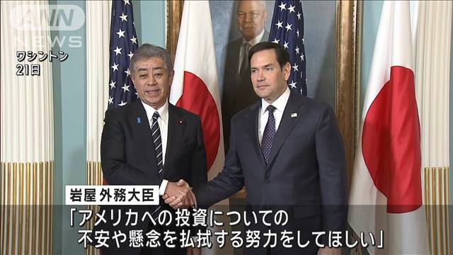 その上で岩屋外相は、日本はアメリカにとって最大の投資国だと強調し、対米投資への懸念を払拭するよう求め、防衛費の増額を進めていることも説明しました。