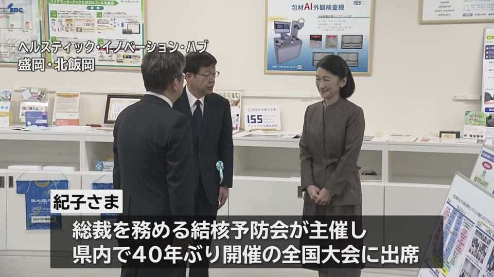 結核予防全国大会に出席するため、4日来県した秋篠宮妃紀子さまが、岩手県盛岡市で医療機器メーカーなどの集積拠点施設を視察されました。