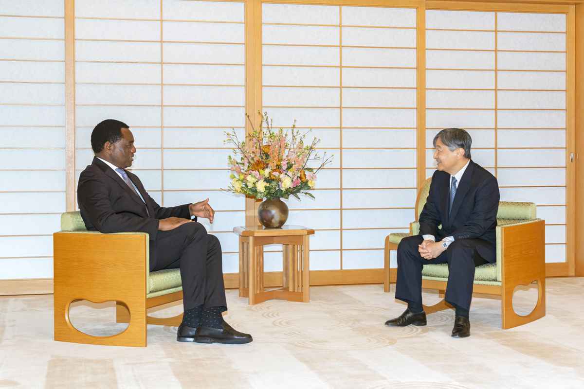 天皇陛下は、ザンビアの大統領と皇居で面会されました。
