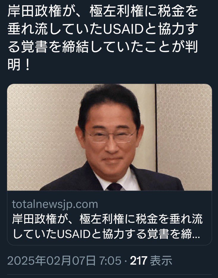 岸田政権が、極左利権に税金を垂れ流していたUSAIDと協力する覚書を締結していたことが判明