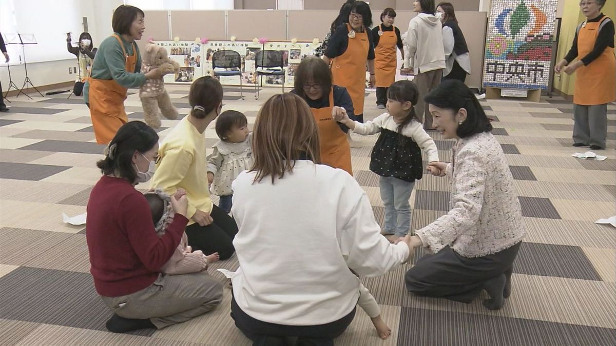 中央市の子育て支援センターではハンドベルの演奏に参加される一幕もあったほか、集まった親子と一緒に昔ながらの手遊びをして交流を深められていました。