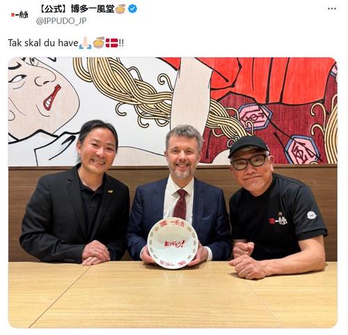 国王に即位後、初めて日本を公式訪問したデンマークのフレデリック10世が23日、食料安全保障の会議やセミナーに出席した後、東京・銀座に赴いた。向かった先は、あの大手ラーメンチェーン「一風堂」だった。