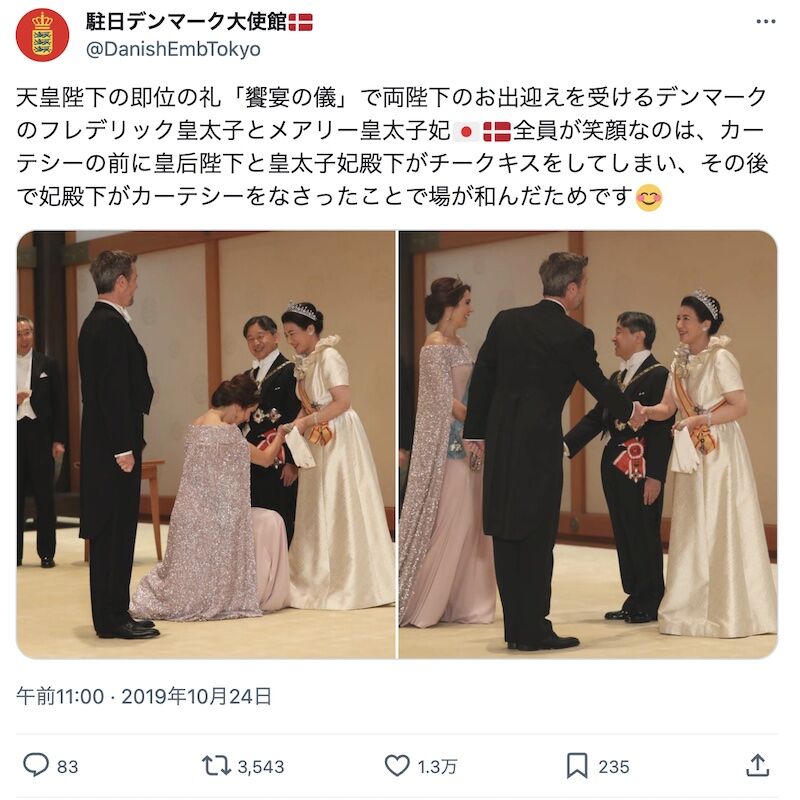 天皇陛下は2004年、国王夫妻の結婚式に出席したほか、2017年、外交関係樹立150周年にあたりデンマークを公式訪問されました。国王夫妻も同じ年に来日し両陛下と親交を深めたほか、2019年、即位の礼にも参列しています。