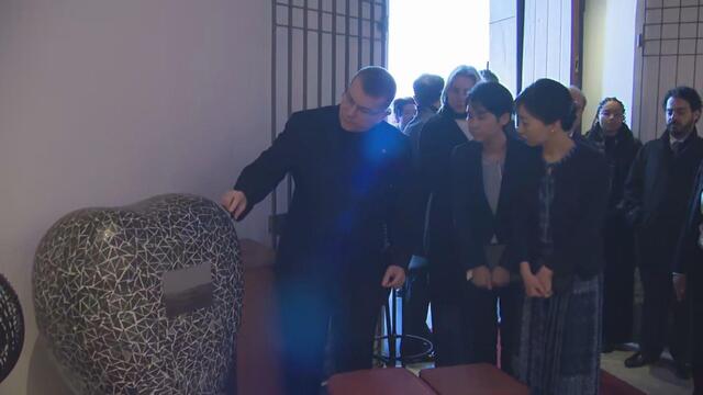 佳子さまはキリスト像内にある礼拝堂の説明を受け、眼下に広がるリオの街並みを視察されます。