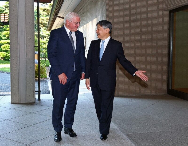 天皇陛下は18日、皇居・御所で、来日中のドイツのシュタインマイヤー大統領と会見された。宮内庁によると、大統領から戦後80年での取り組みを尋ねられ、陛下は「過去と向き合って、次の世代に伝えていくことが非常に重要だと考えている」と述べた。 戦後80年の戦没者慰霊として、陛下は硫黄島と沖縄を訪れ、19日からは広島、さらに長崎訪問も予定していると説明した。訪問先では遺族に加え「若い人たちを含めた語り部の人たちの話も伺うことにしている」とした。