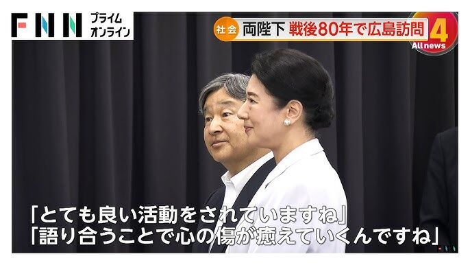 両陛下は19日、広島訪問の1日目を終え、「被爆された方々のお話を伺い、みなさんが経験された苦難の一端に触れ、そのご苦労をしのぶと共に、皆さんが困難を乗り越え、これまでのつらい体験や平和の尊さを自ら語りついでおられることに、深い敬意を抱きました」と感想を公表されています。