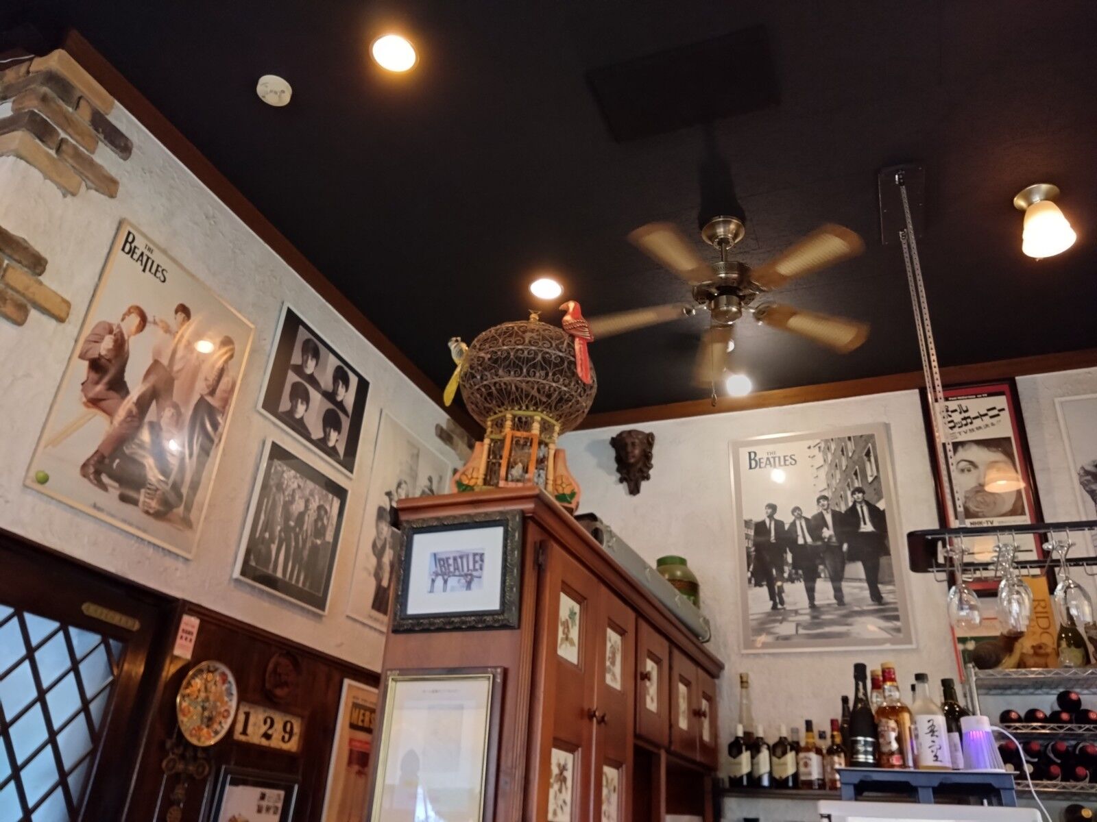 ここはビートルズの写真やギターなどが飾ってあり、音楽もビートルズ。