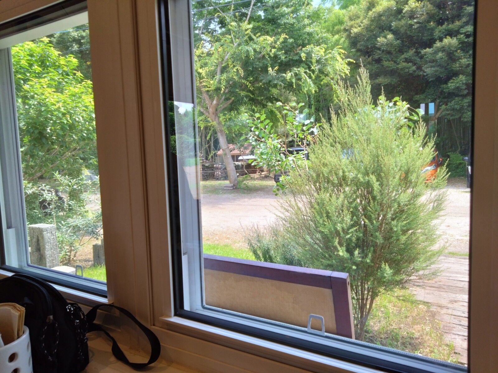 外は緑がいっぱい、野苺かな?食べてみたくなる。