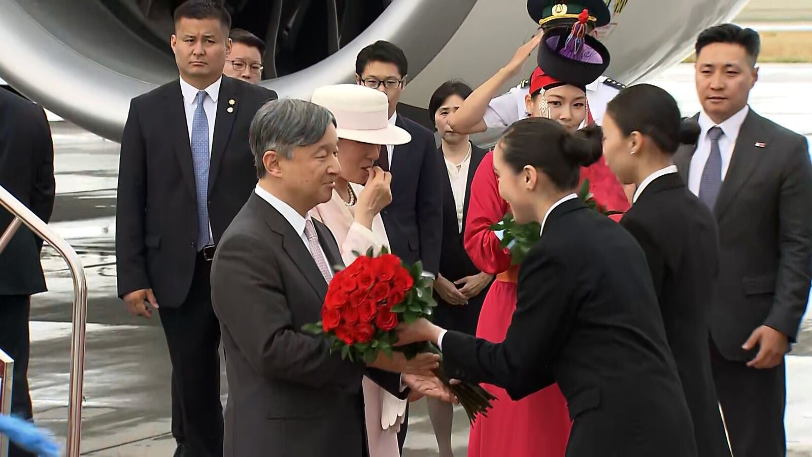 天皇皇后両陛下 モンゴルに到着 約1年ぶり お二人そろって外国訪問 (0:44)