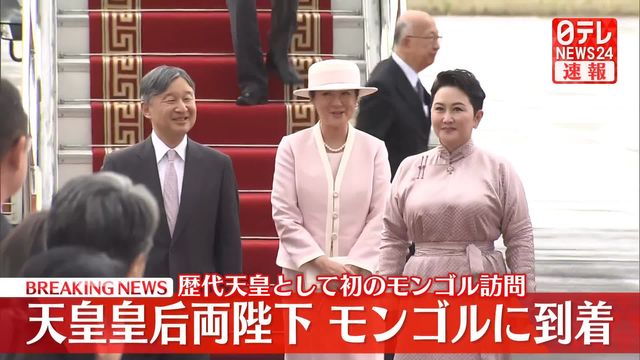 両陛下は同日午後、モンゴルのチンギスハン国際空港へご到着。8日には首都・ウランバートルで、歓迎式典やモンゴルのフレルスフ大統領夫妻との会見、宿泊先のホテルでの晩餐(ばんさん)会などの公式行事に臨まれる。また同日、先の大戦後に同国で抑留中に亡くなった元日本兵らの慰霊碑も訪問し、供花される予定。