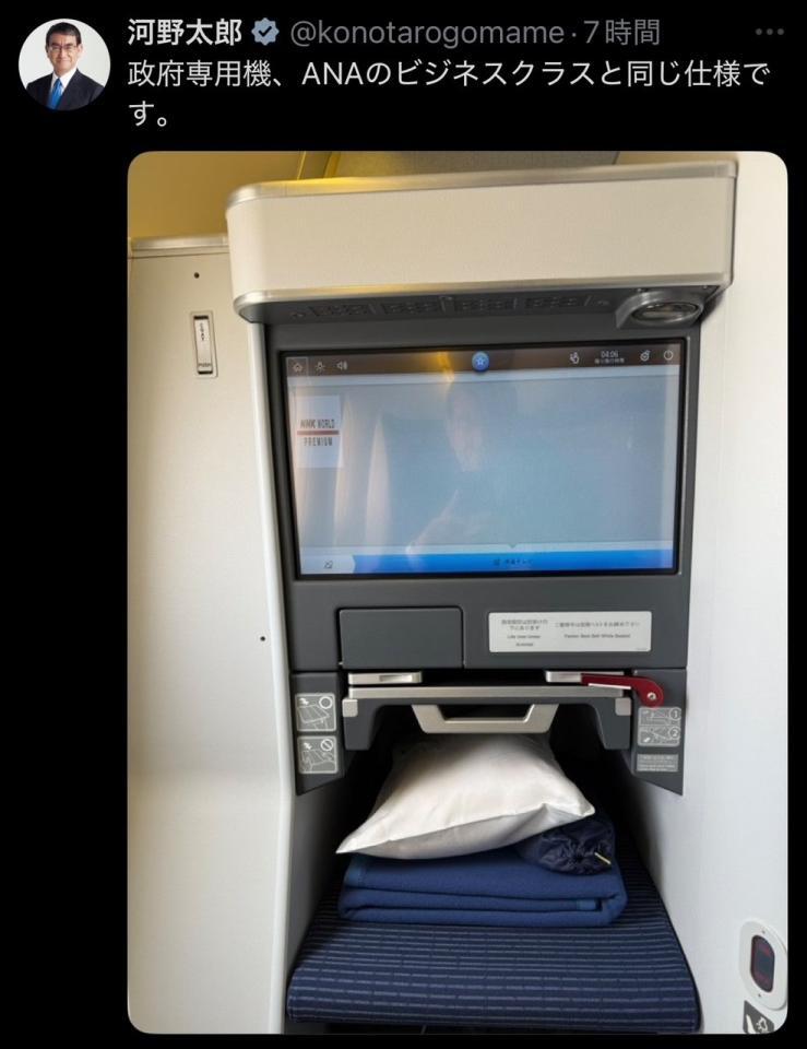 河野氏、他にもXで機内の写真を公開した: