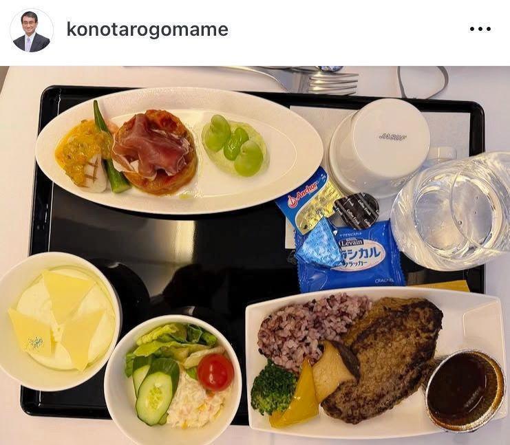 河野太郎氏 政府専用機内、機内食まで公開「へ!」「これはすごい」「結果残して」の声 天皇、皇后両陛下に随行しモンゴル訪問