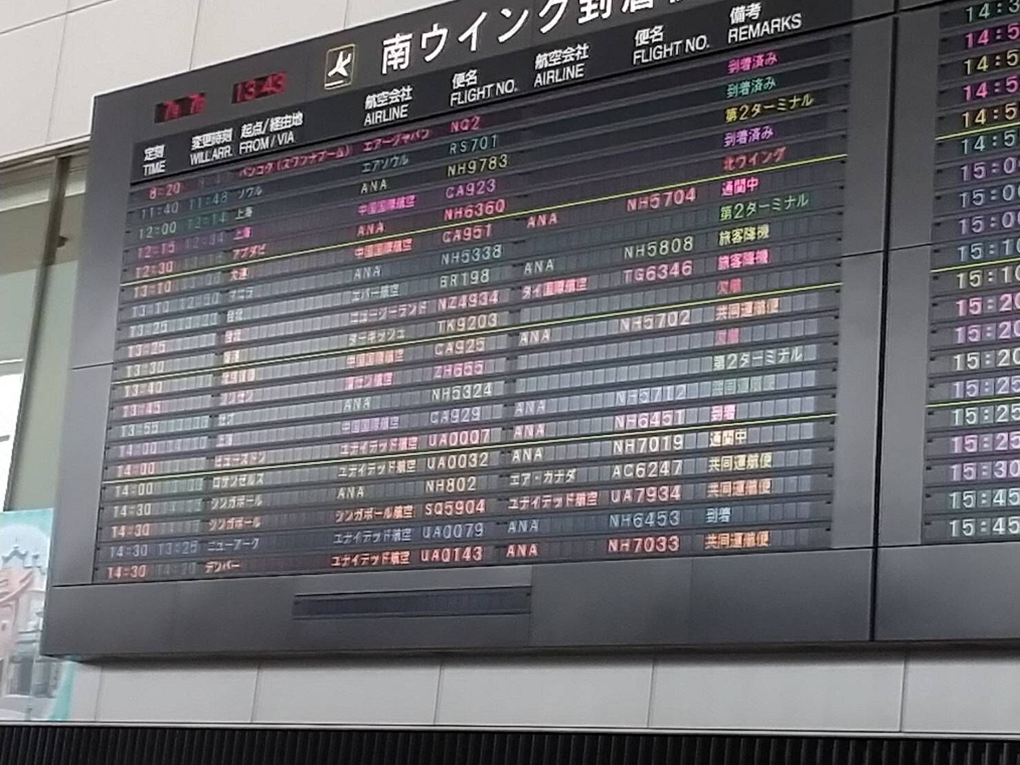 聞いていたユナイテッドエアライン0007便が午後1時過ぎ到着し、空港到着ロビーで待った。
