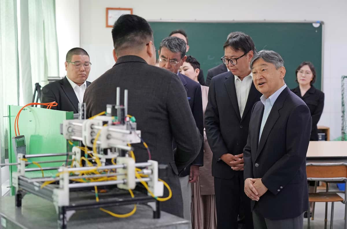 9日午前は陛下単独で、日本の高等専門学校(高専)をモデルにした「モンゴルコーセン技術カレッジ」を訪れた。