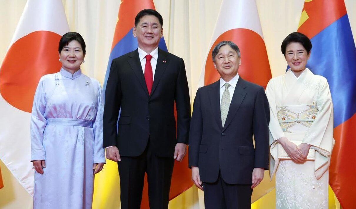 ウフナ・フレルスフ大統領の招待を受け、徳仁天皇と雅子皇后はモンゴルへ公式訪問されています。2025年7月8日、徳仁天皇と雅子皇后はウランバートル市内のホテルで、ウフナ・フレルスフ大統領とルブサンドルジ・ボロルツェツェグ大統領夫人主催の公式晩餐会に出席されています。