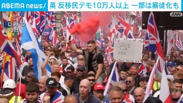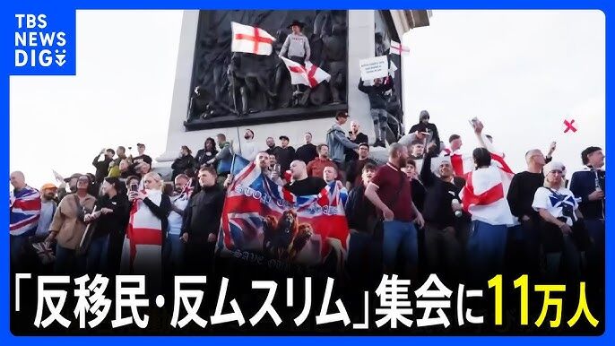 イギリス・ロンドンで極右活動家が主催する大規模な集会が行われ、11万人以上が参加し反移民などを訴えました。
